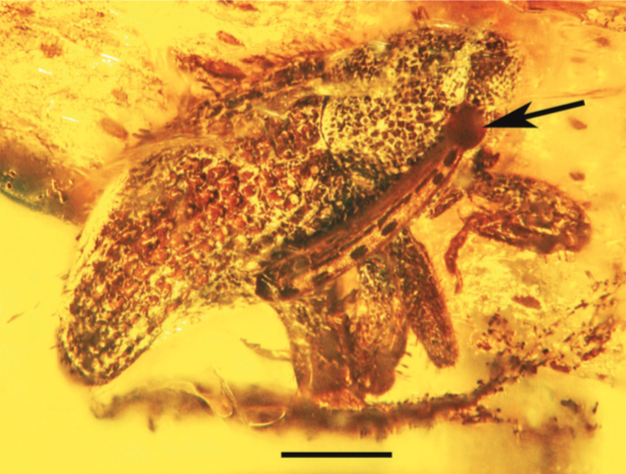 Au printemps de 2016, le paléo-entomologiste américain George Poinar, Professeur au Département de biologie intégrative à l’Université de l’Oregon, apporte les premières preuves de l’existence lointaine de cette association de pollinisation coléoptères/orchidées grâce à la découverte de deux fossiles dans des morceaux d’ambre datés de 20-25 millions d’années.