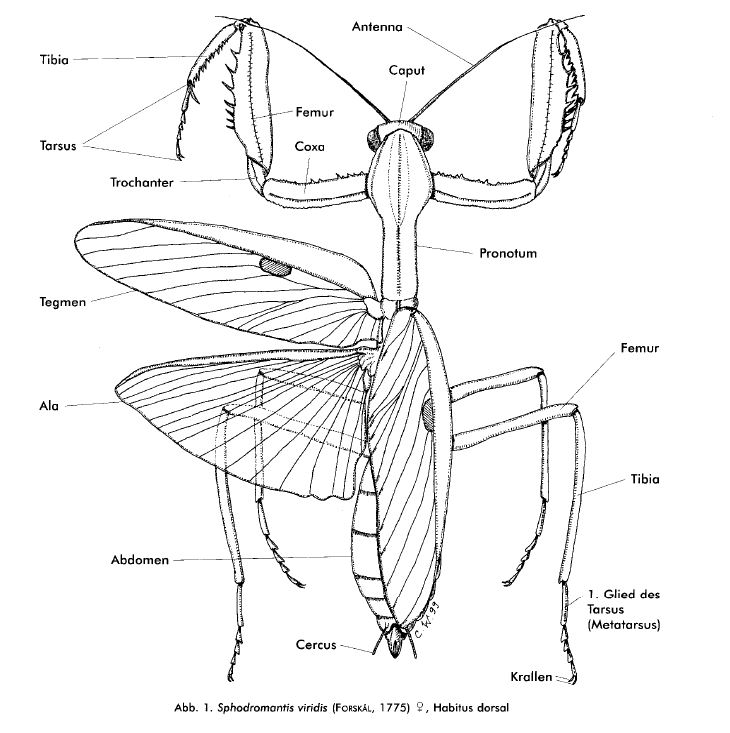 Habitus général d’une mante (Source : d’après Ehrmann 2002)